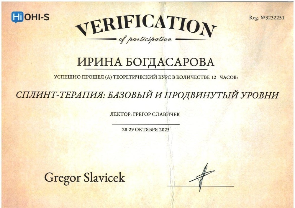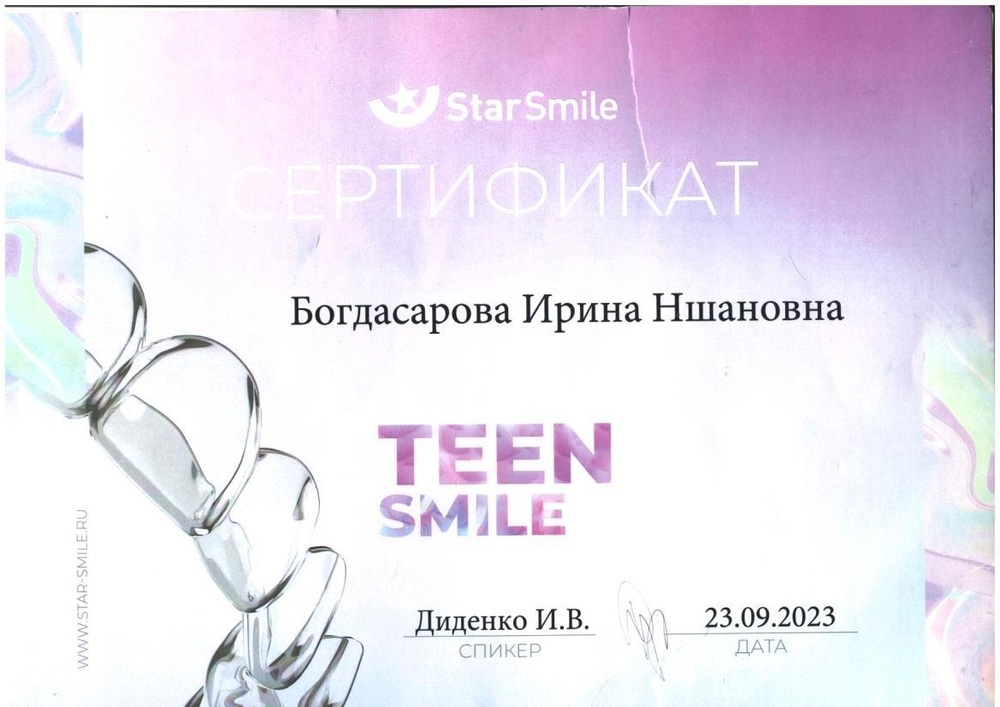 2012 - Диплом по специальности врач-стоматолог, Рязанский Государственный медицинский университет им. И.П. Павлова