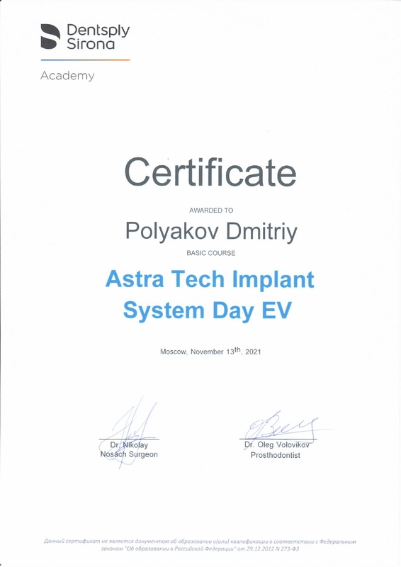 2009 - Диплом по специальности врач-стоматолог, Московский государственный медико-стоматологический университет