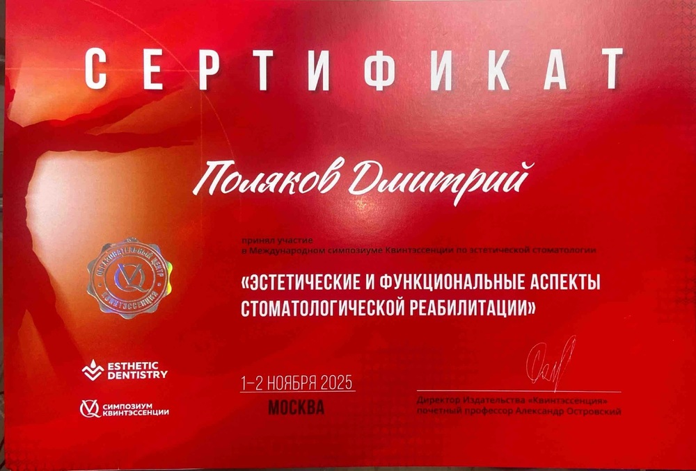 2015 - Аспирантура по специальности ортопедическая стоматология, Московский государственный медико-стоматологический университет.